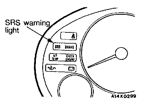 2. Reconnect the negative battery terminal. Turn the ignition key to the "ON" position. Does the "SRS" warning light illuminate for about 7 seconds, turn OFF and then remain OFF? If yes, SRS system is functioning properly. If no, Inspection Chart For Trouble Symptoms