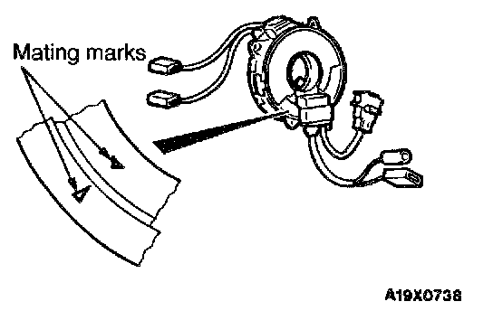 CAUTION: Ensure that the clock spring's mating marks are properly aligned. If not, the steering wheel may not rotate completely during a turn, or the flat cable in the clock spring could be damaged. This would prevent normal SRS operation and possibly cause serious injury to the driver.