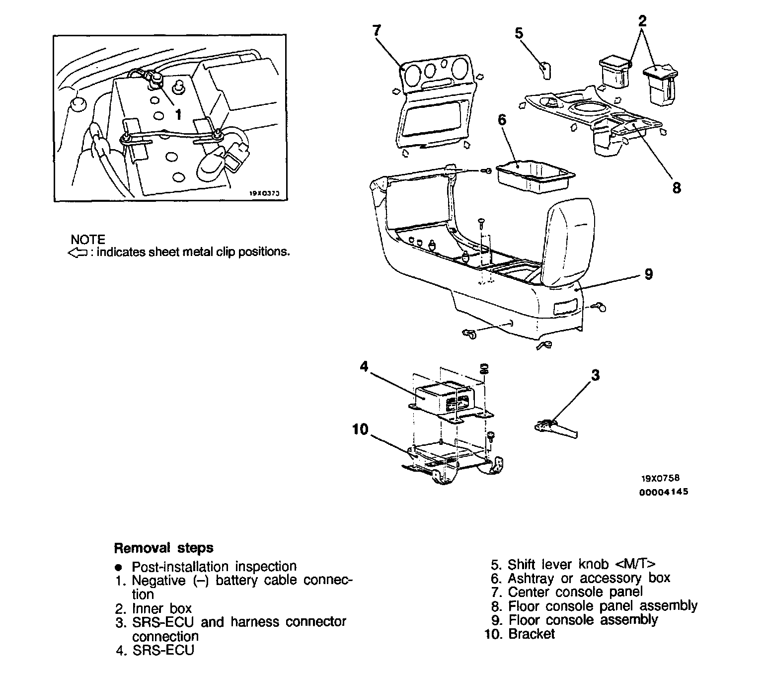 - Check the SRS-ECU case and brackets for dents, cracks or deformities.