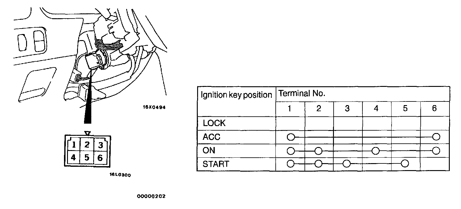 3. Disconnect the wiring connector from the ignition switch and connect an ohmmeter to the switch side connector.