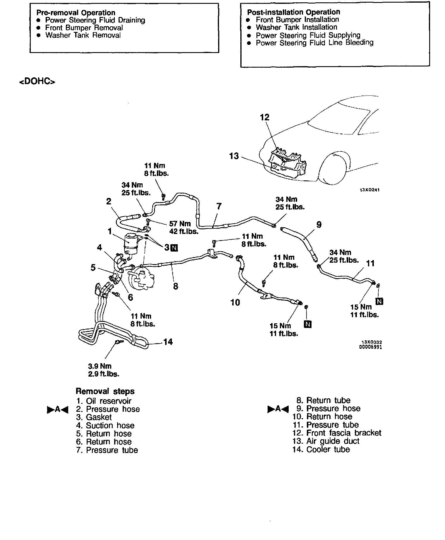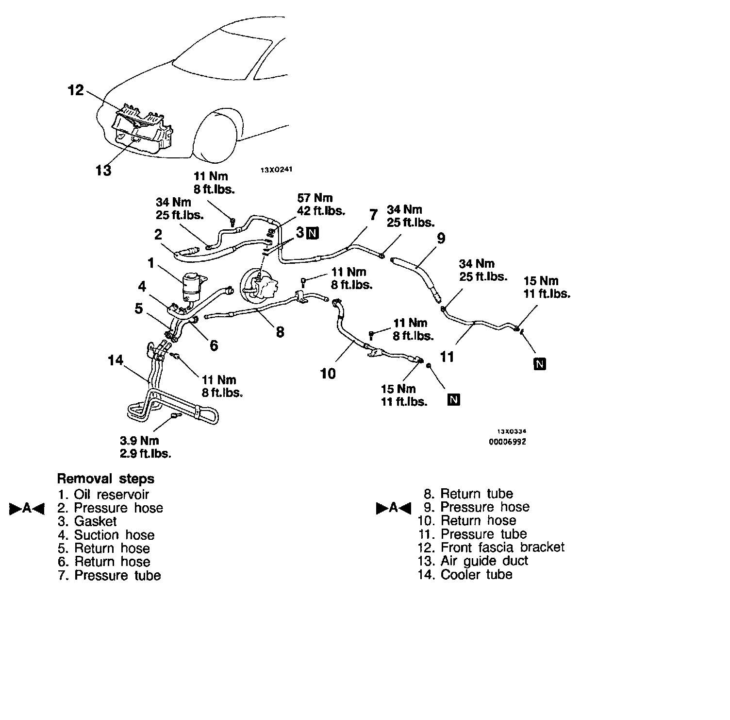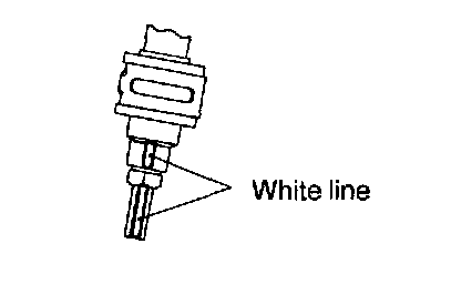 When the pressure hose is installed, align the white line on the pressure hose with the white line on the pressure tube so that together they form a straight line.
