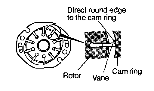 - Check the contact surface of cam ring and vanes for "stepped" wear.