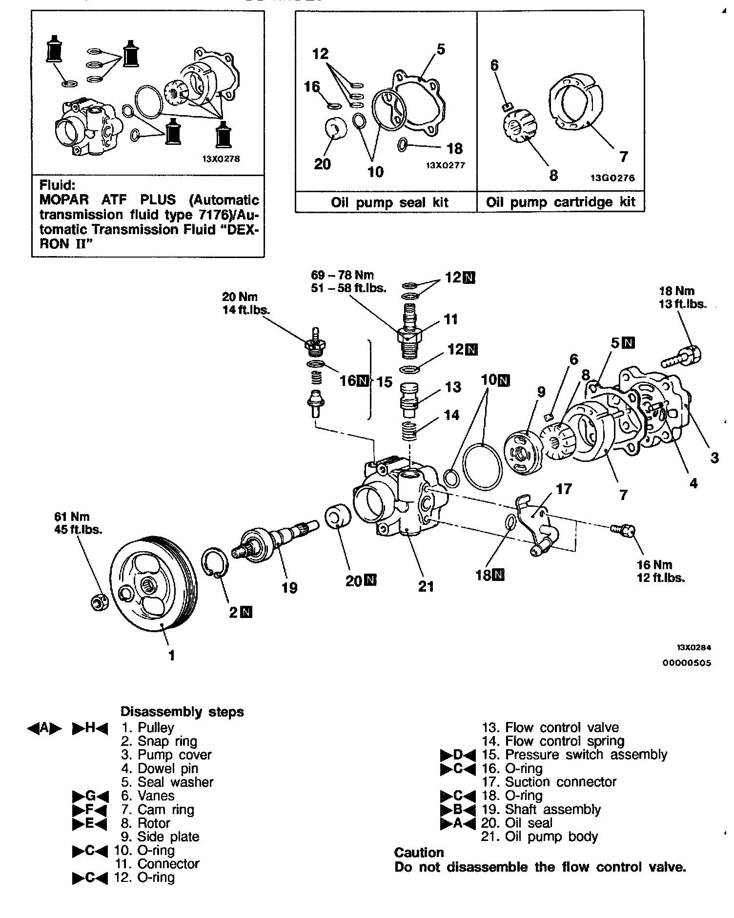 Specified fluid: MOPAR ATF PLUS (Automatic transmission fluid type 7176)/Automatic Transmission Fluid "DEXRON II"