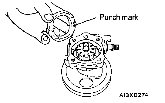 Install the rotor to the shaft assembly so that the rotor's punch mark is at the pump cover side.