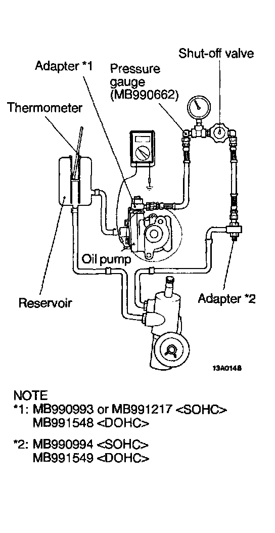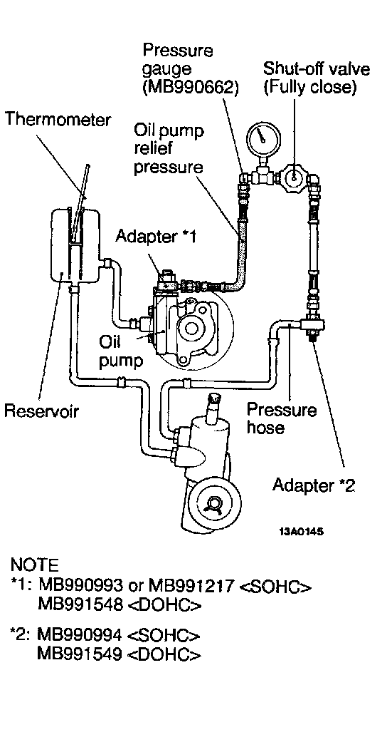 1. Disconnect the pressure hose from the oil pump, and then connect the special tools.