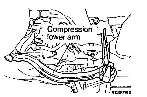 CAUTION: The compression lower arm should be suspended so that undue force is not applied to the ball joint.