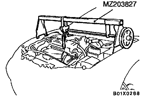 1. Set the special tool to the vehicle to support the engine assembly.