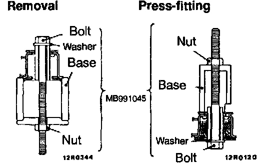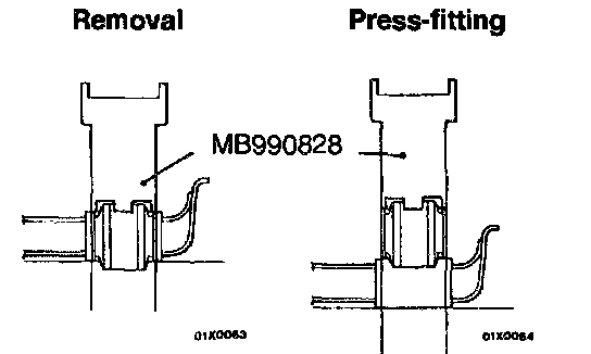 1. Use the special tool to drive out and press-fit the crossmember bushing C.