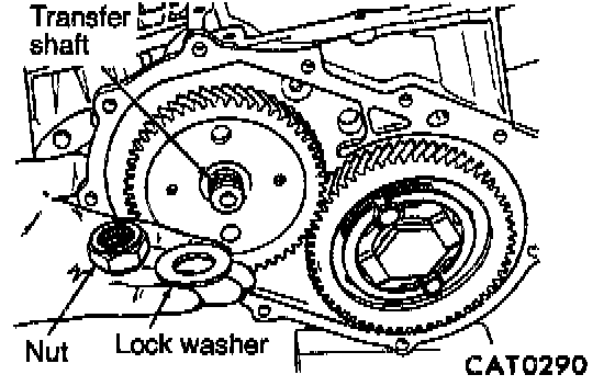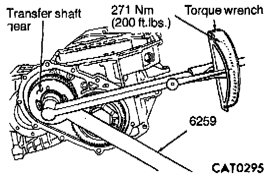 57. Tighten transfer shaft gear nut to 271 Nm (200 ft. lbs.. while holding transfer shaft gear with Holder 6259.