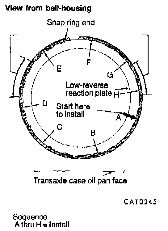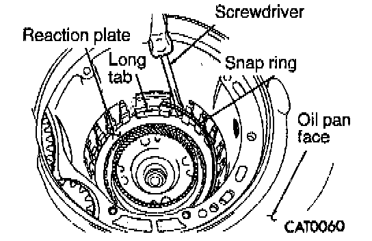 61. Using a screwdriver, install new/low/reverse reaction plate flat snap ring.