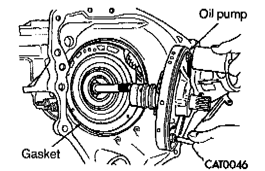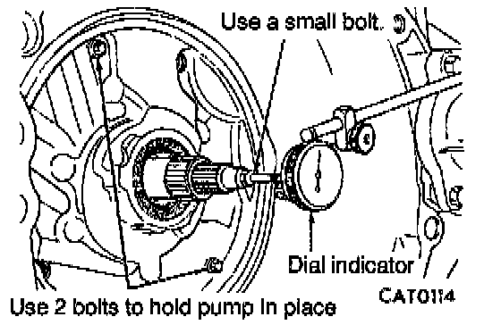 Temporarily secure oil pump with 2 oil pump bolts. Insert a small bolt into end of input shaft.