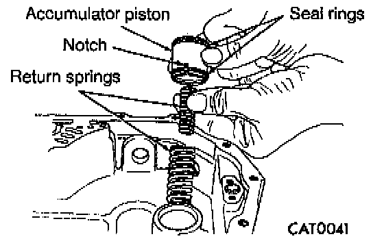 88. Install return spring (overdrive) or two return spring (underdrive) and two seal rings from the overdrive and underdrive clutch accumulator pistons.