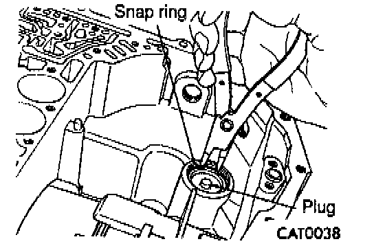 87. Install the snap ring holding the low/reverse accumulator plug (cover) in place.
