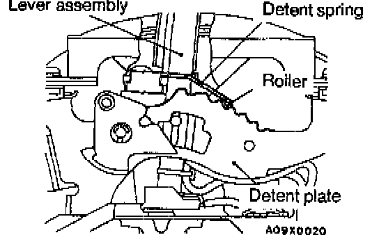 Shift the selector lever to the neutral (N) position, and the install the detent spring assembly so that the roller is in the detent plate groove.
