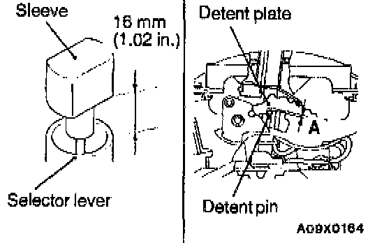 1. Put the selector lever in the "N" position, turn the sleeve and adjust the dimension between the sleeve and the end of the lever so it reaches 16 mm (1.02 inch)