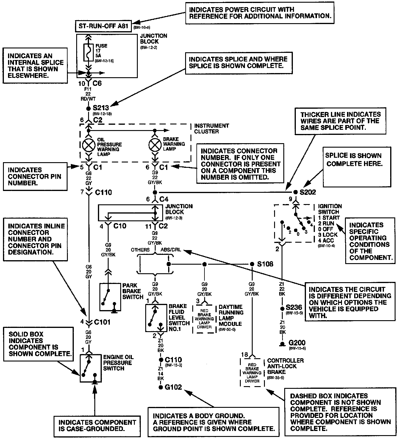 It is important to realize that no attempt is made on the diagrams to represent components and wiring as they appear on the vehicle. For example, a short piece of wire is treated the same as a long one. In addition, switches and other components are shown as simply as possible, with regard to function only.