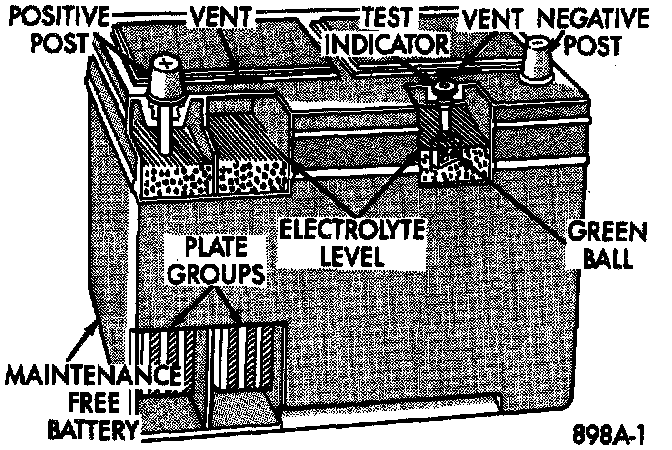 Maintenance-free batteries have non-removable battery vent caps. Water cannot be added to this battery. Under normal service the composition of this battery reduces gassing and water loss at normal charge rates. If the battery electrolyte level becomes low, this battery must be replaced.