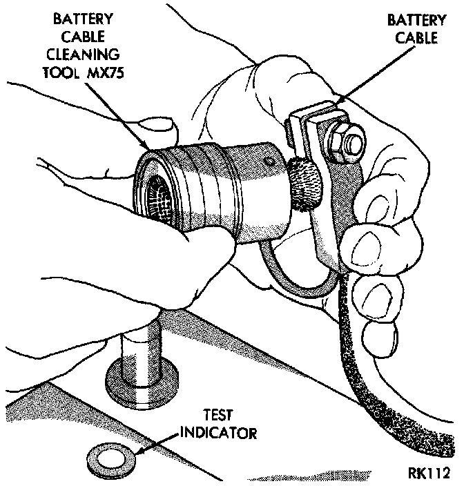 7. Clean battery cable clamps with a battery terminal cleaning tool. Replace cables that are frayed or have broken clamps.