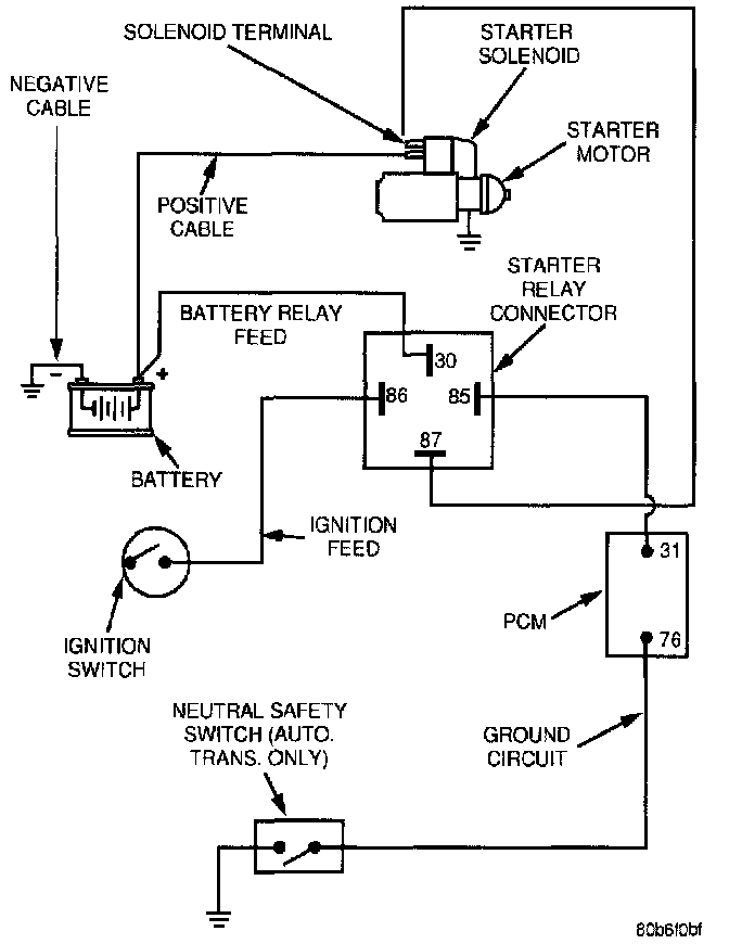 - Starter motor with an integral solenoid These components form two separate circuits. A high amperage circuit that feeds the starter motor up to 300+ amps, and a control circuit that operates on less than 20 amps.