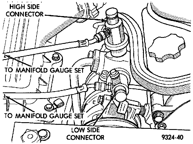 To check or fill systemThe procedure below should be used to check and/or fill the refrigerant charge in the air conditioning system.