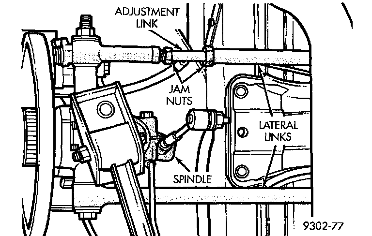 2. Tighten lateral link, adjustment link lock-nuts to 88 Nm (65 ft. lbs.) torque.