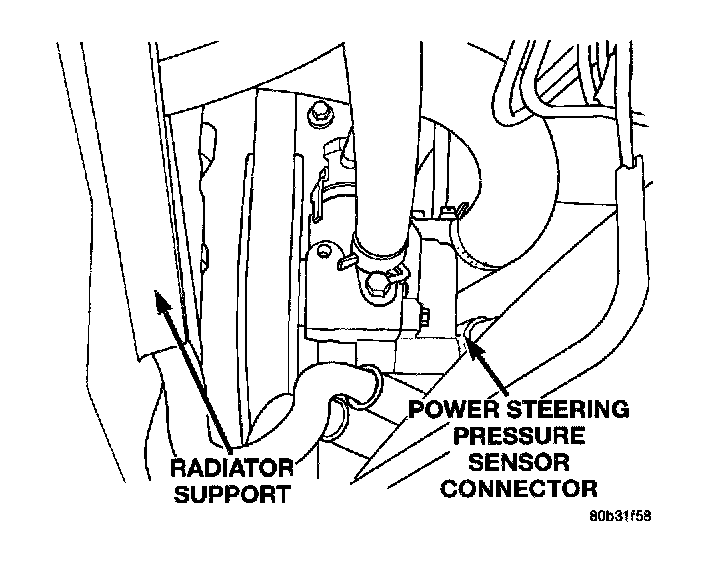 Radiator Support, Power Steering Pressure Sensor Connector: