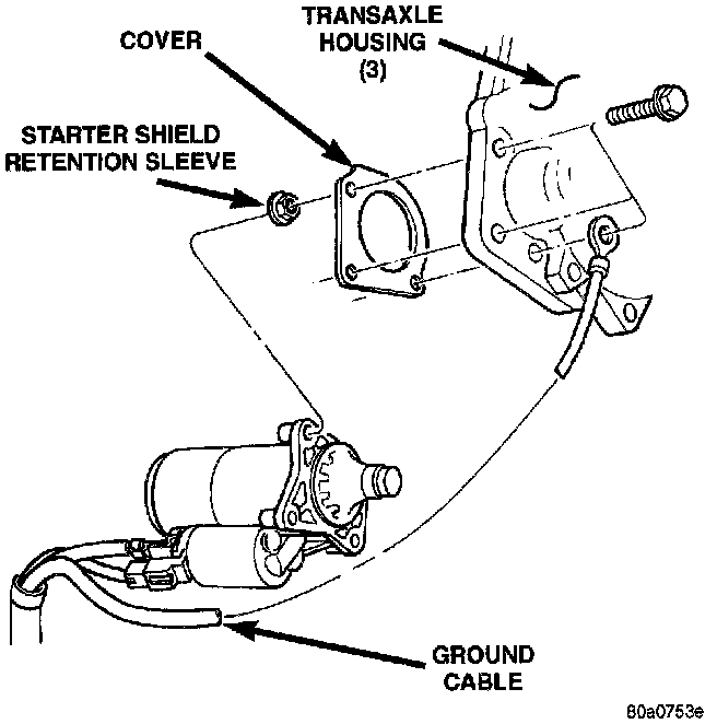 5. Remove starter solenoid assembly from transmission housing. Position the starter to gain access to the posi-lock wiring connector.