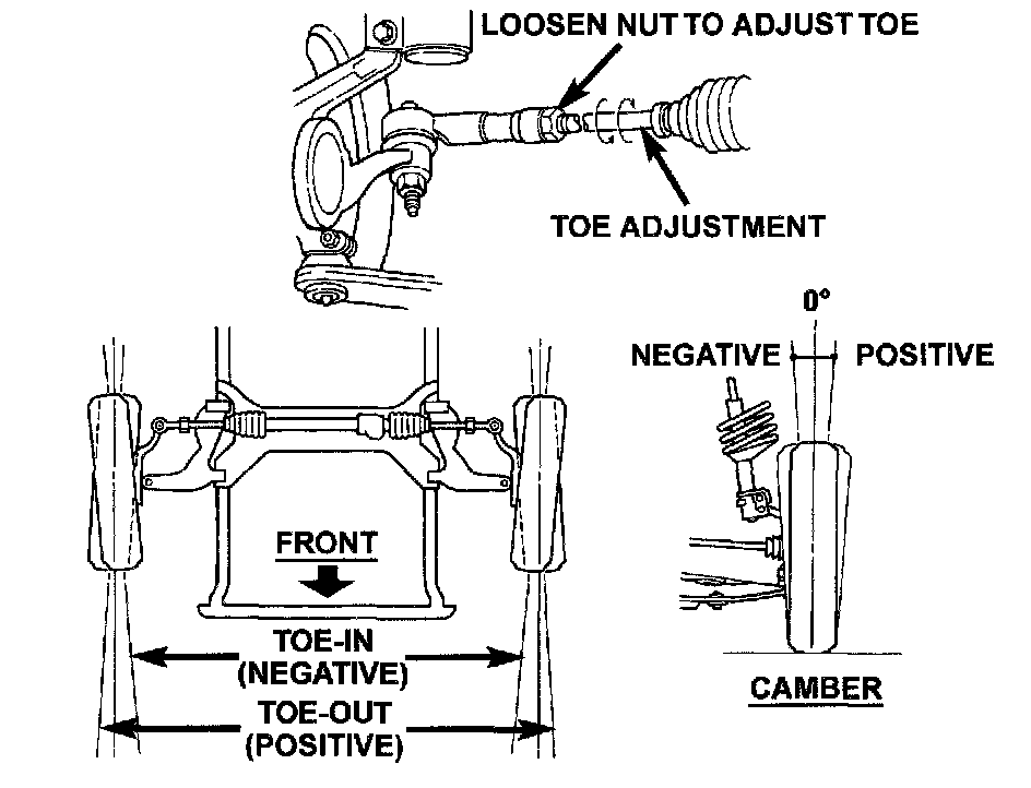 WHEEL ALIGNMENTProper vehicle wheel alignment is the proper adjustment of all interrelated front and rear suspension angles. These angles are what affects the handling and steering of the vehicle when it is in motion.