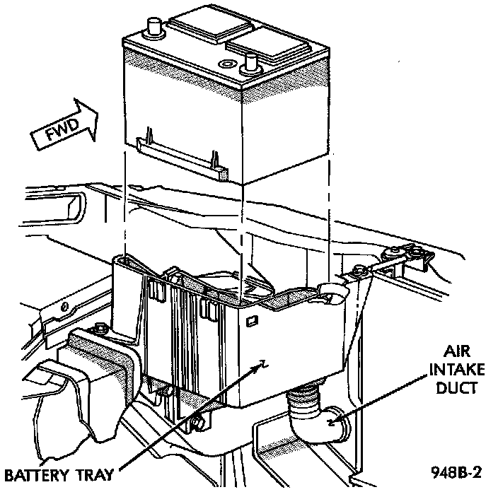 2. Install battery hold down clamp, making sure that it is properly positioned on battery.