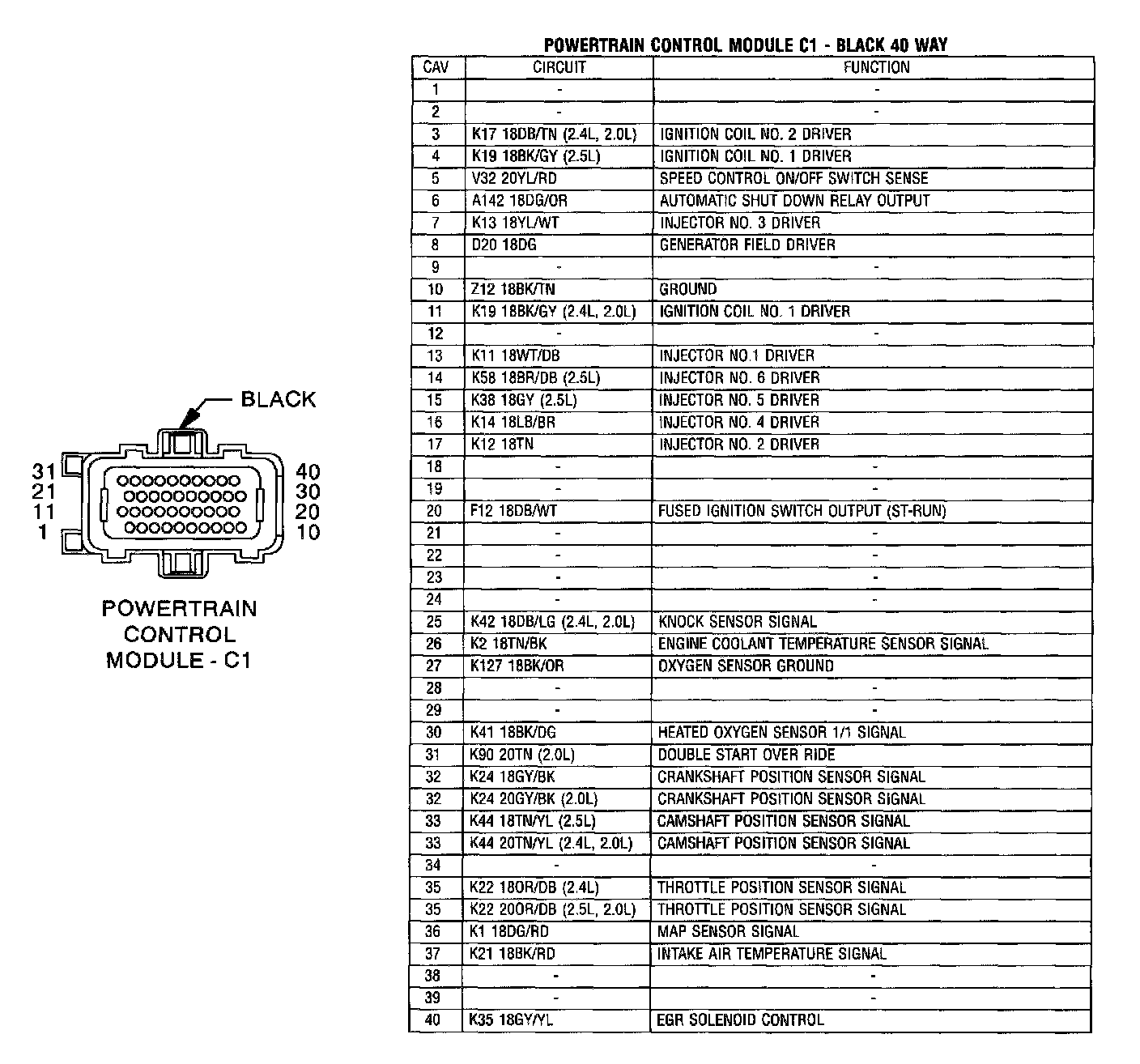 Powertrain Control Module C1 - Black 40 Way
