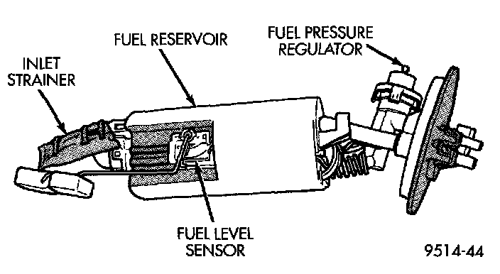 The inlet strainer, fuel pressure regulator and fuel level sensor are the only serviceable items. If the fuel pump or electrical wiring harness requires service, replace the fuel pump module.