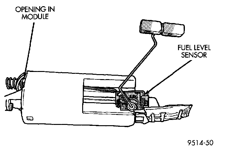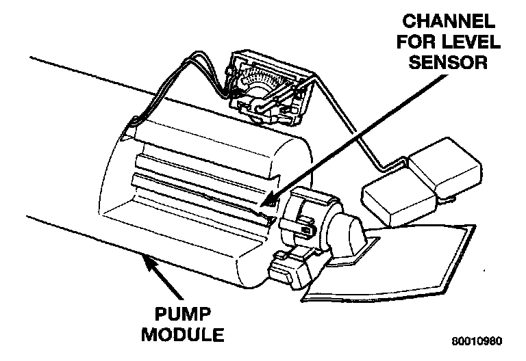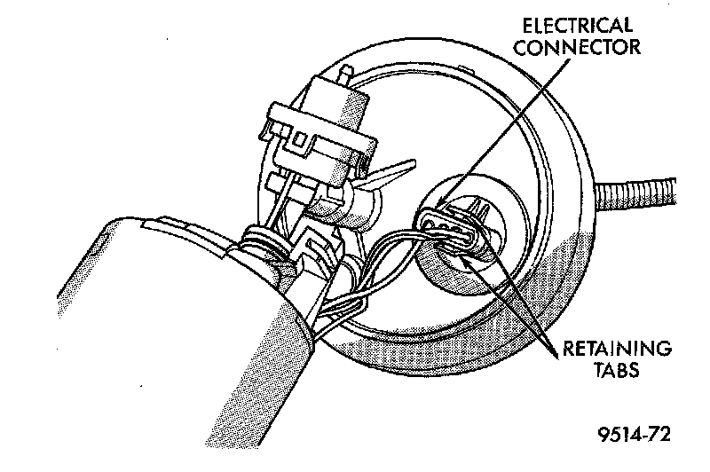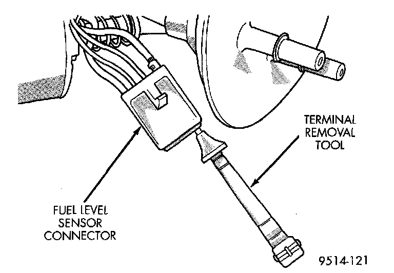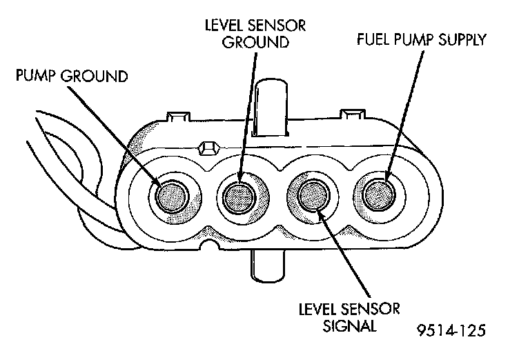 1. Depress retaining tab and remove the fuel pump/level sensor connector from the BOTTOM of the fuel pump module electrical connector.