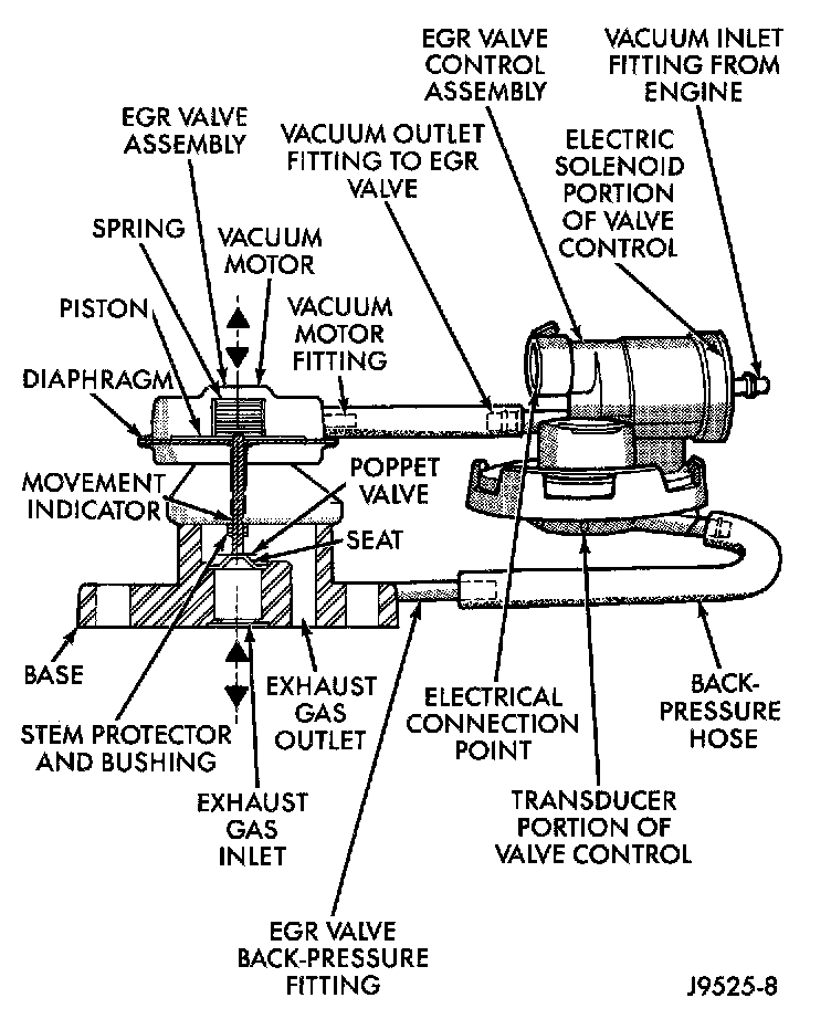 De-energizing the solenoid, but not fully closing the transducer bleed hole (because of low back-pressure), varies the strength of vacuum applied to the EGR valve. Varying the strength of the vacuum changes the amount of EGR supplied to the engine. This provides the correct amount of exhaust gas recirculation for different operating conditions.