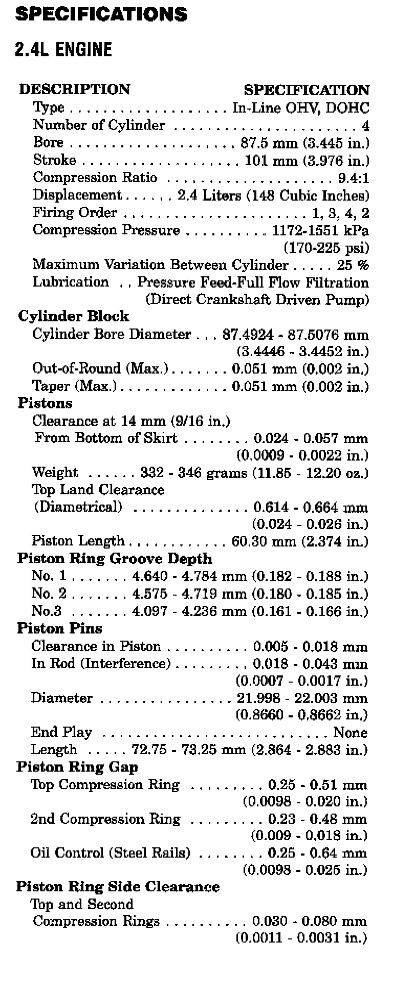 Stratus L4-2.4L VIN X