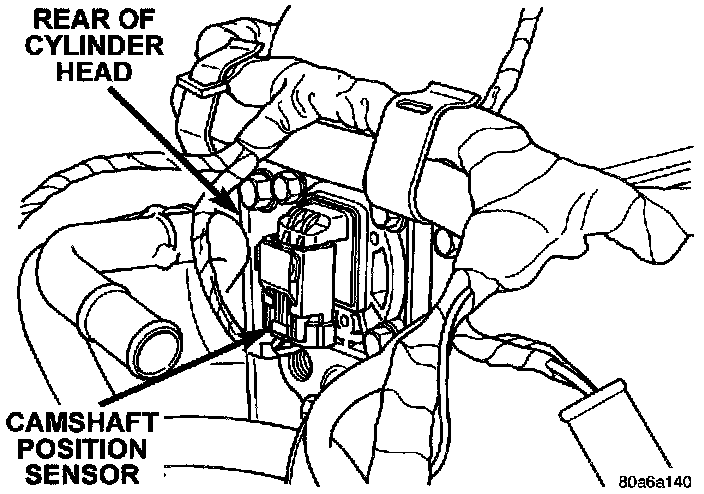 The camshaft position sensor is mounted to the rear of the cylinder head.