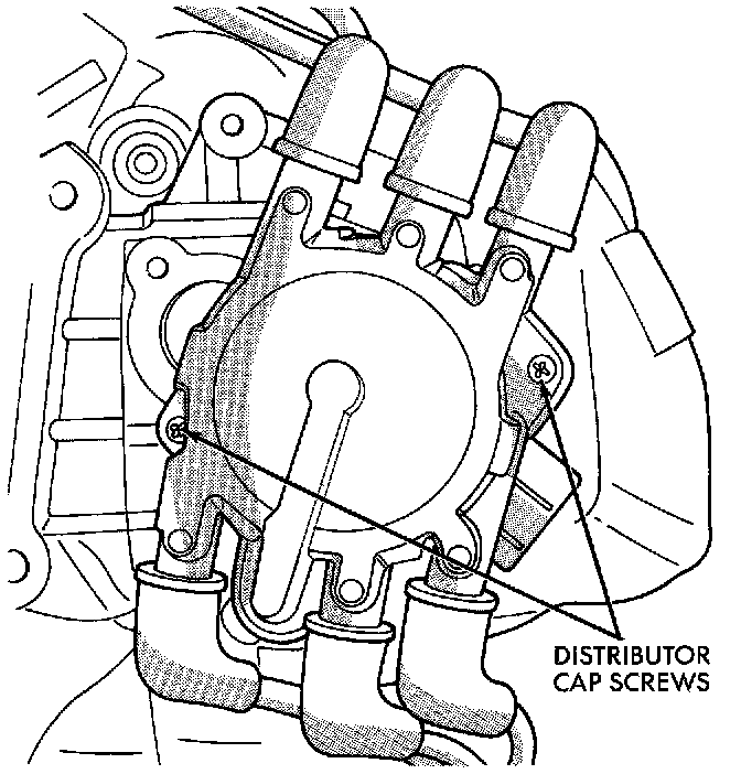 8. Loosen distributor cap holdout screws and remove cap.