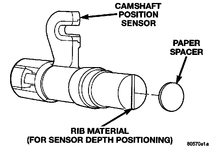 A thin plastic rib is molded into the face of the sensor to position the depth of sensor to the upper cam gear (sprocket). This rib can be found on both the new replacement sensors and sensors that were originally installed to the engine. The first time the engine has been operated, part of this rib may be sheared (ground) off. Depending on parts tolerances, some of the rib material may still be observed after removal. If the old sensor is to be used again you can use a paper spacer to set the proper gap for the sensor to cam drive gear spacing.
