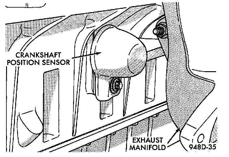 A heat shield covers the crankshaft position sensor. The sensor is located in the middle of the right side of the cylinder block, just above the oil pan.