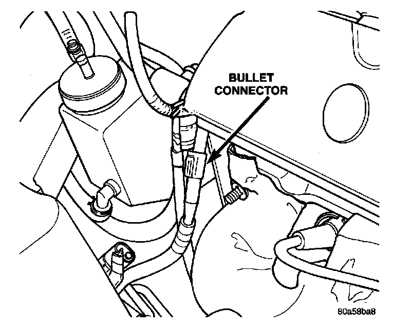 1. Disconnect positive battery cable at bullet connector near power steering pump.