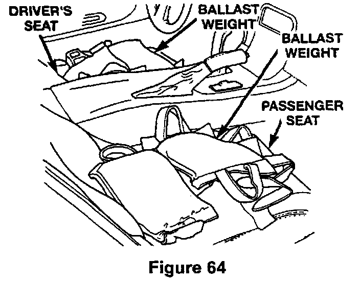 2. Add ballast weight as required to the passenger compartment of the vehicle to lower the front of the vehicle to the specified design height (Figure 64).