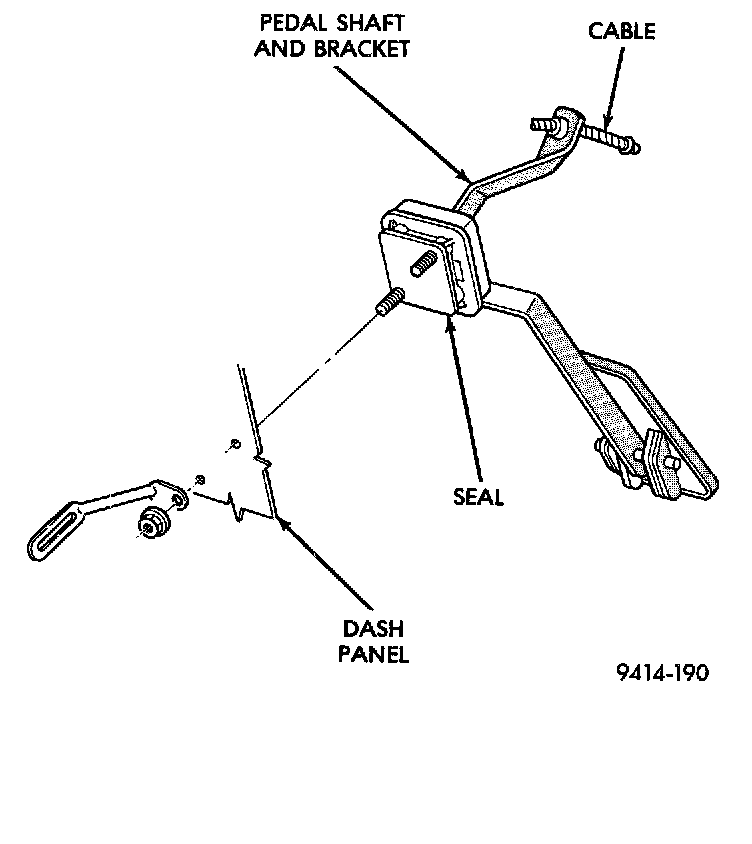 18. From the engine compartment side of the dash panel, remove the 2 nuts mounting the accelerator pedal to the dash panel.