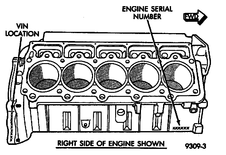 The engine vehicle identification number is located on the rear of the cylinder block just below the right cylinder head. The engine serial number is located on the lower right front of the cylinder block near the oil filter.