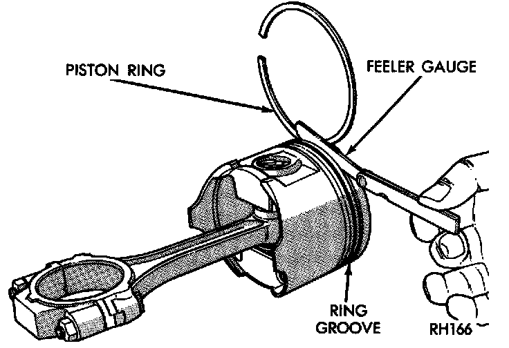1. Wipe cylinder bore clean. Insert ring and push down with piston to ensure it is square in bore. The ring gap measurement must be made with the ring positioning at least 12 mm (0.50 inch) from bottom of cylinder bore. Check gap with feeler gauge. Refer to Specifications.