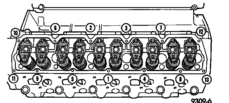 3. Clean cylinder head rail. Install a new gasket if required and tighten cylinder head cover fasteners in sequence shown in above image to 11 Nm (95 inch lbs.).