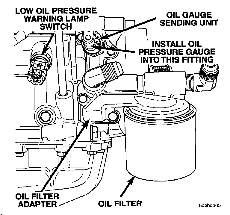 To test the system, turn the ignition key to the ON position. If the lamp fails to light, inspect for broken or disconnected wires at the oil pressure sensor unit located at the front of the engine.