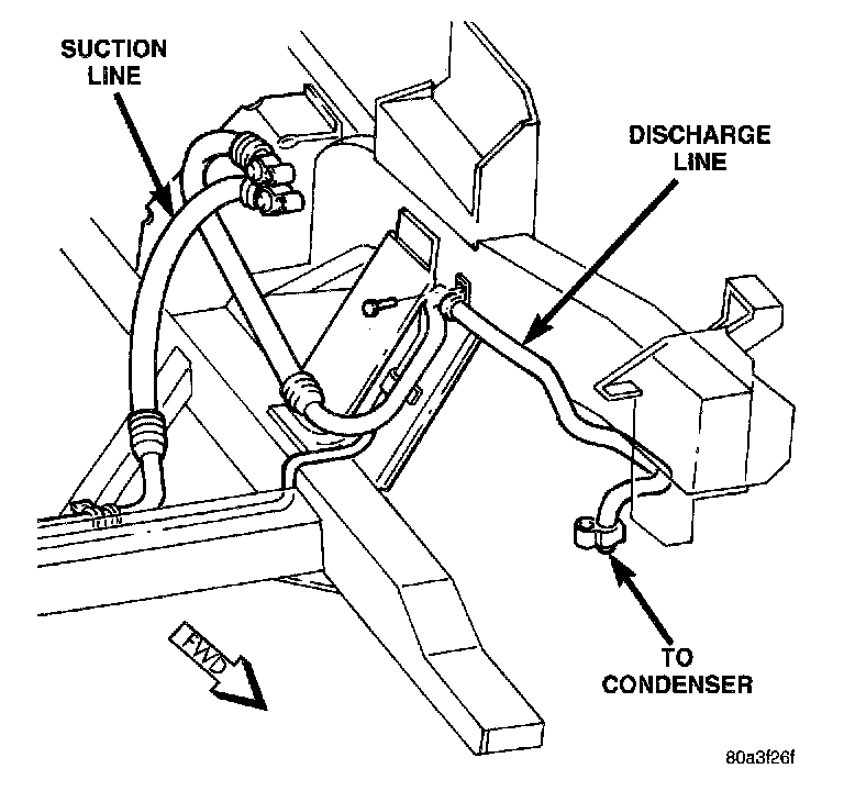 REMOVAL1. Remove refrigerant from the A/C system using a refrigerant recovery machine.