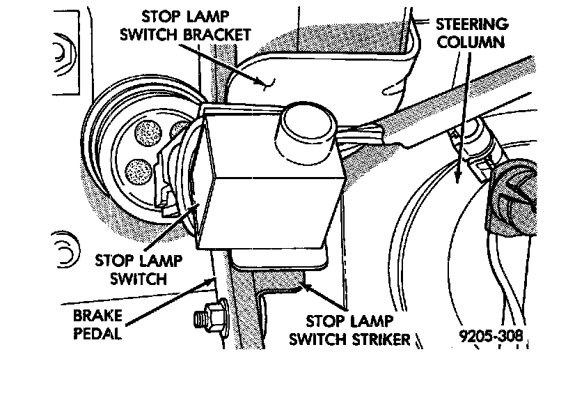 CAUTION: Do not use excessive force when pulling back on brake pedal to adjust the stop lamp switch. If to much force is used, damage to the stop lamp switch or striker can result.