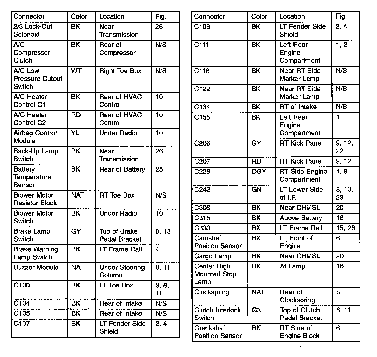 Connector & Ground Locations Index