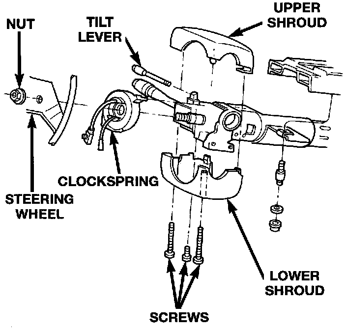 5. Remove the upper and lower steering column shrouds to gain access to the clockspring wiring.