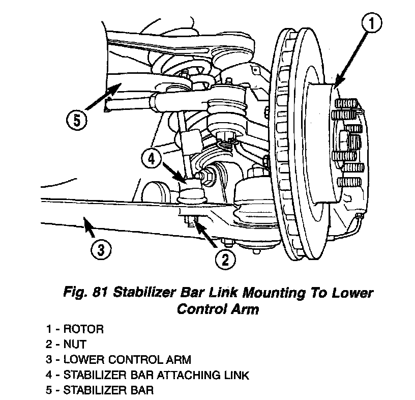 5. Install the stabilizer bar attaching link into mounting hole on the lower control arm. Install the stabilizer bar attaching link nut. Tighten the stabilizer bar attaching link nut to a torque of 17 Nm (150 inch lbs.).